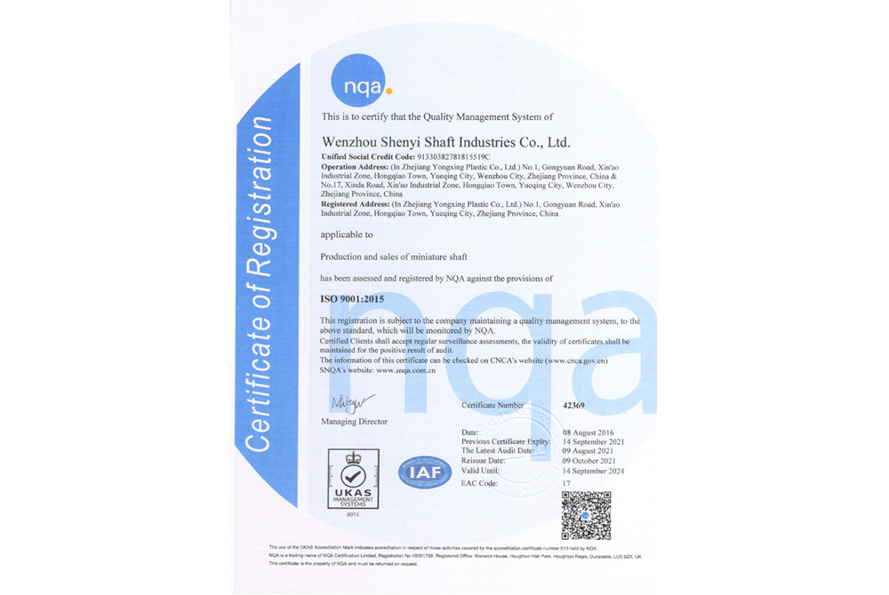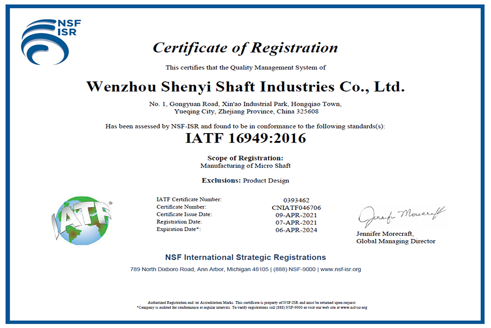 Wenzhou Shenyi Shaft Industries Co.,Ltd established in 1996, after more than 20 years of tortuous and hard development, have moved steadily from low and middle market to upmarket,with feature of Specialized, Precision, Especial, Innovative.Shenyi have introduced world’s leading Swiss ESCO Lathe,Swiss TORNOS eight-axis CNClathe, Japan NISSEI thread rollinglathe, JapanSTAR CNC lathe, Japan NISSIN centerless grinder and other high-precisionequipment.The precision of products is up to micron, equals to 1% of hair, comparable to Mercedes-Benz, Boeing aircraft functional components.Shenyi's products are indispensable high-precision parts in the fields of big data, Internet, artificial intelligence, and 5G.